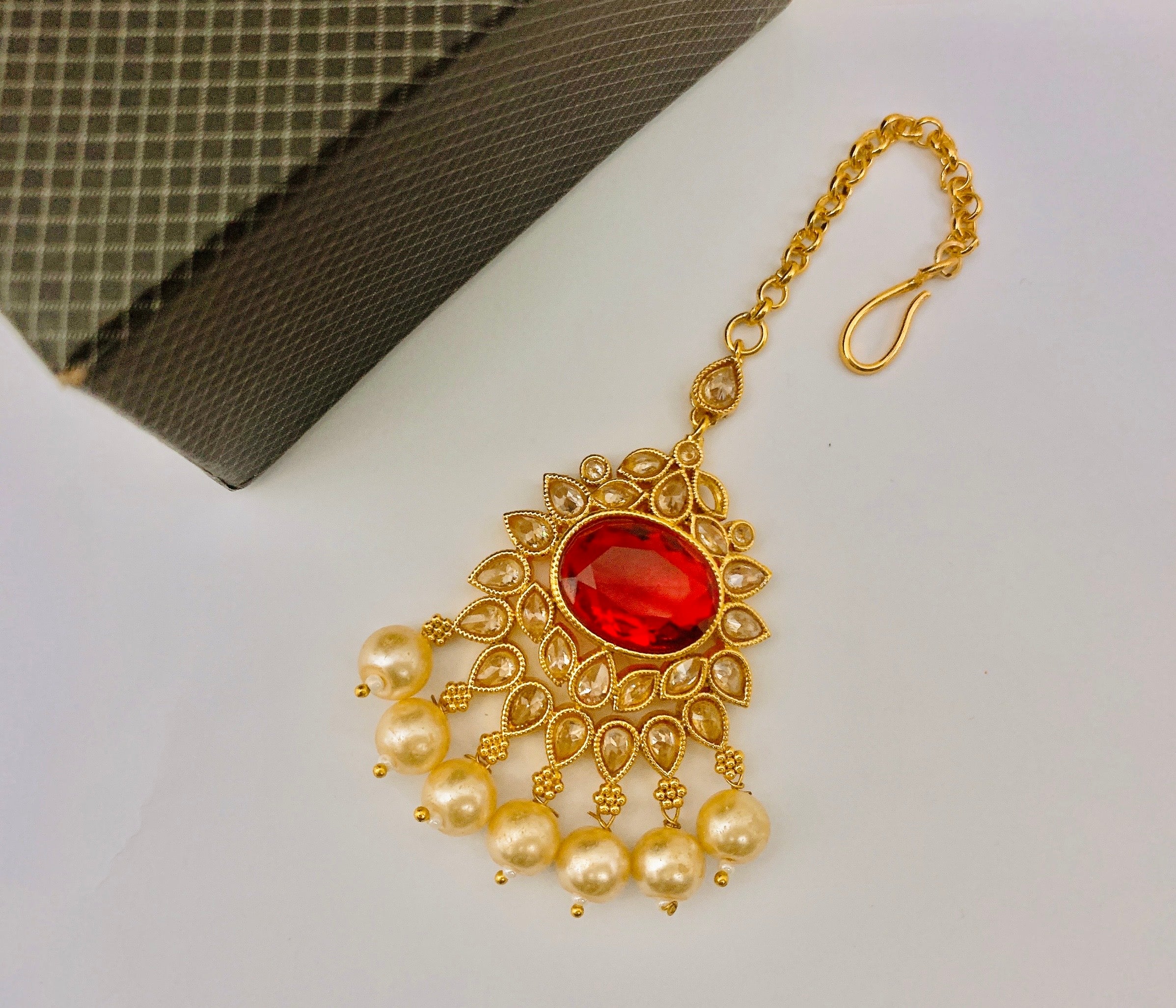 Copper made bindiya in real stone