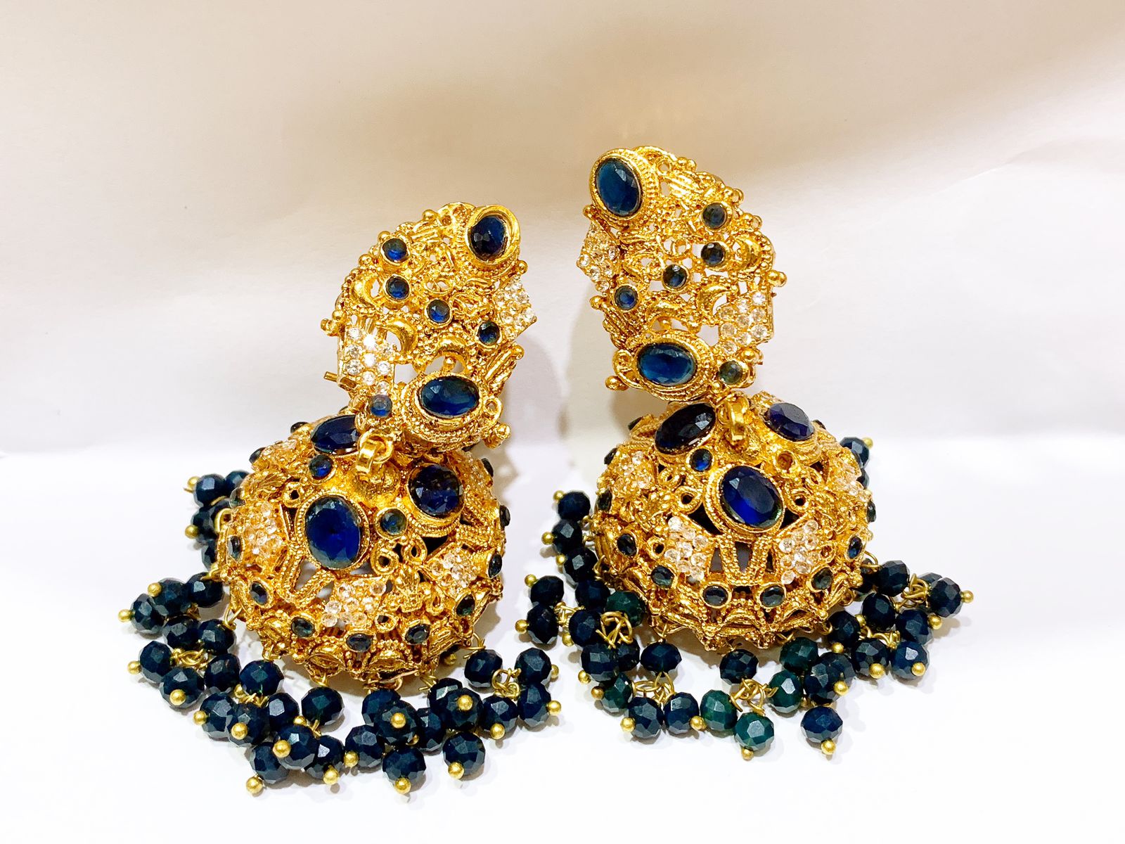 Gold polish Jhumaky in real stones fine quality.
