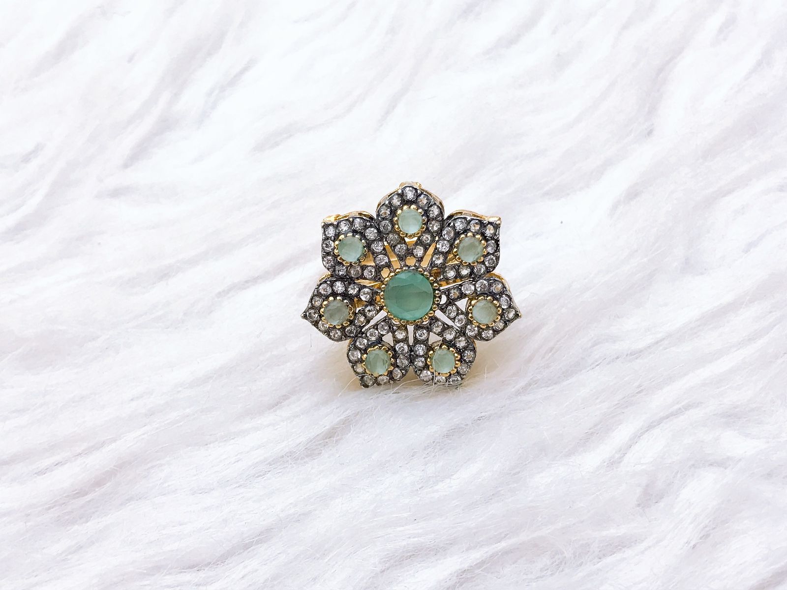 Native made gold plated ring in real stones fine quality.