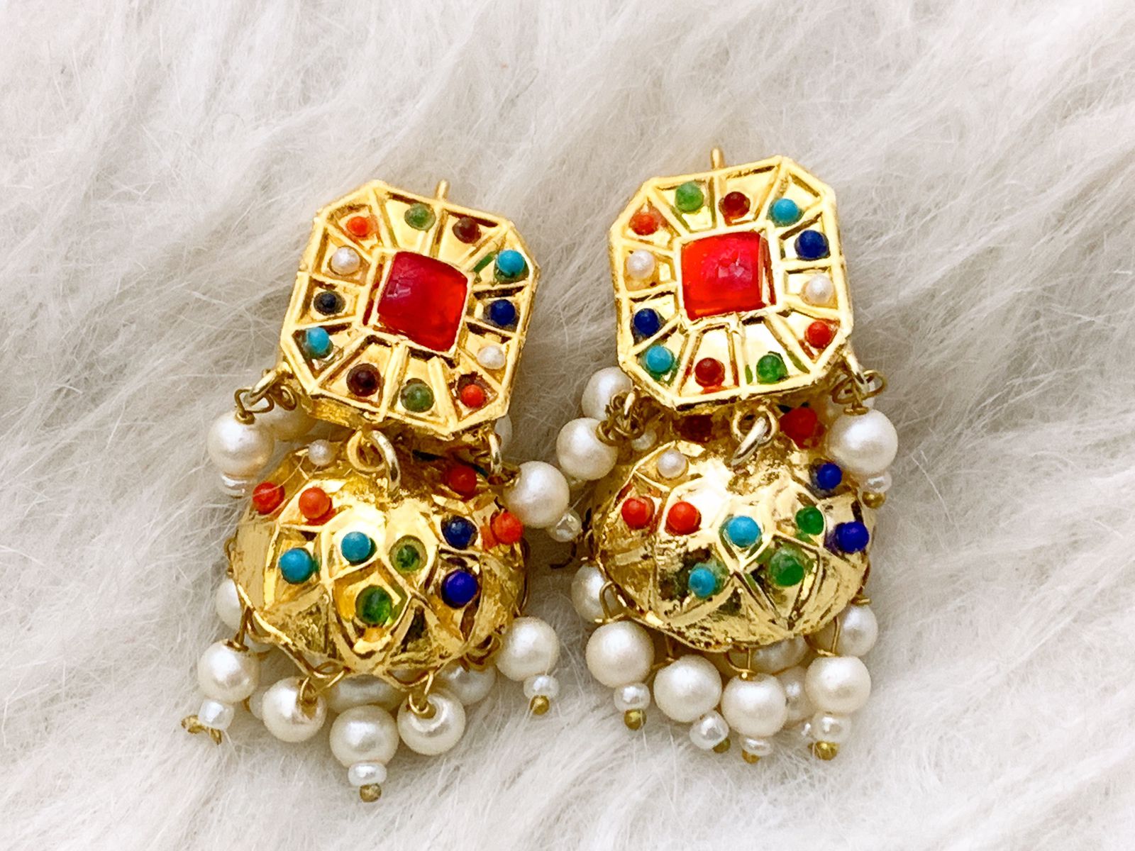 Gold plated thappa Kundan Jhumkay in fine quality.